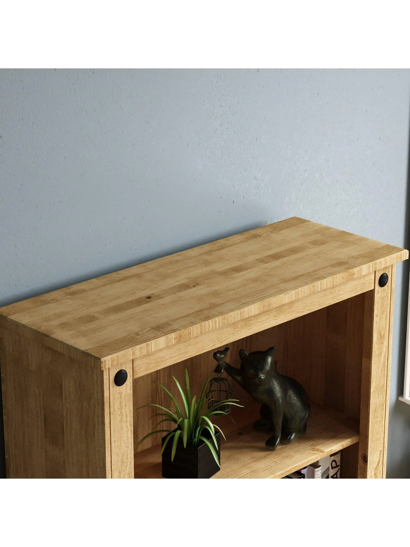 Inspired by traditional Mexican furniture, this Corona bookcase by Vida Designs is crafted from solid pine which has a subtly distressed finish for an aged appearance.