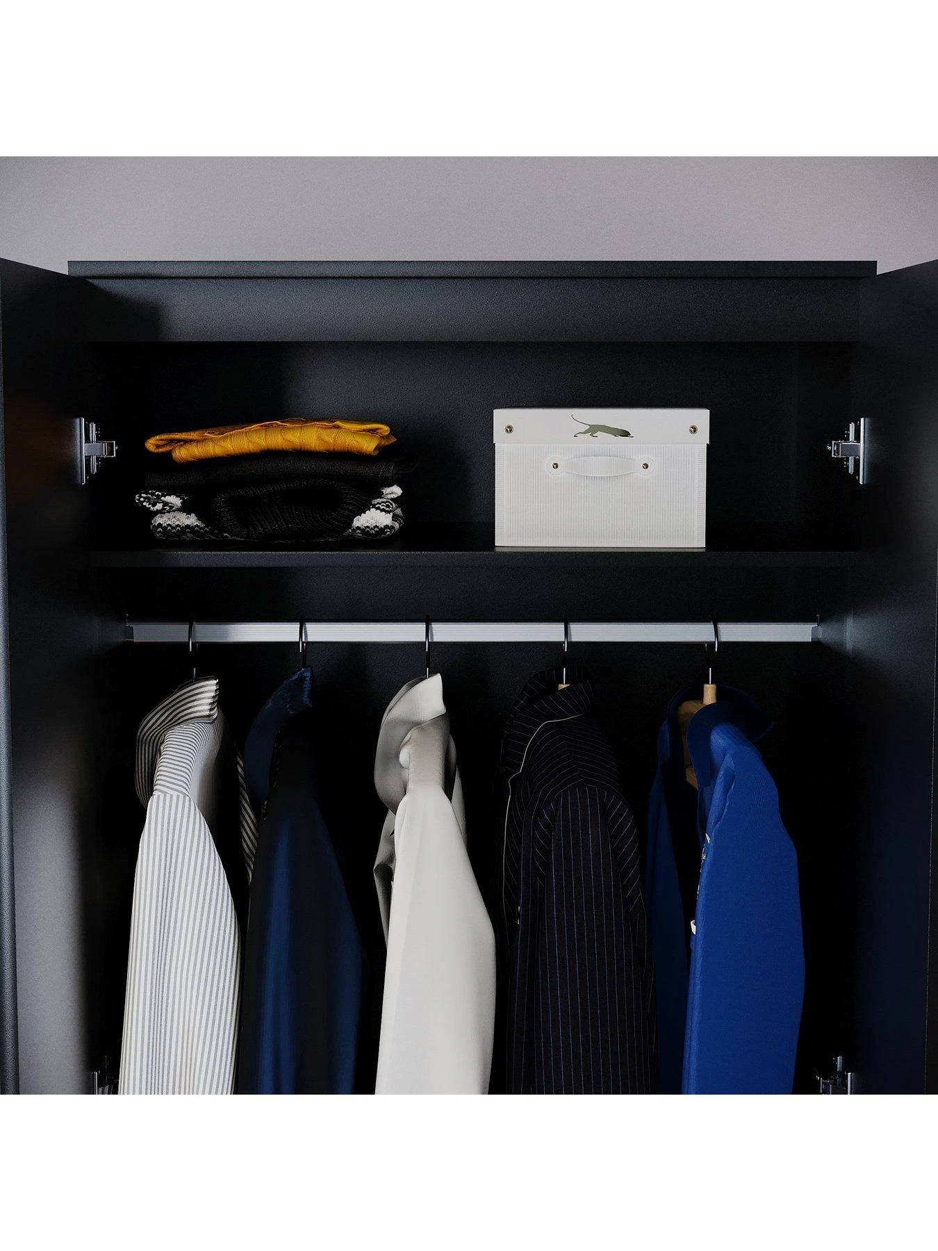 Open up the doors and you’ll find a hanging rail and high shelf for easy outfit organisation, and a range of different colour options and co-ordinating furniture is available separately.