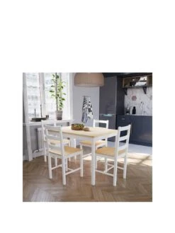 Measuring 108 cm in length, the table is ideal for smaller dining spaces, and it comes complete with four matching ladderback chairs that slide nicely under the table when not in use.