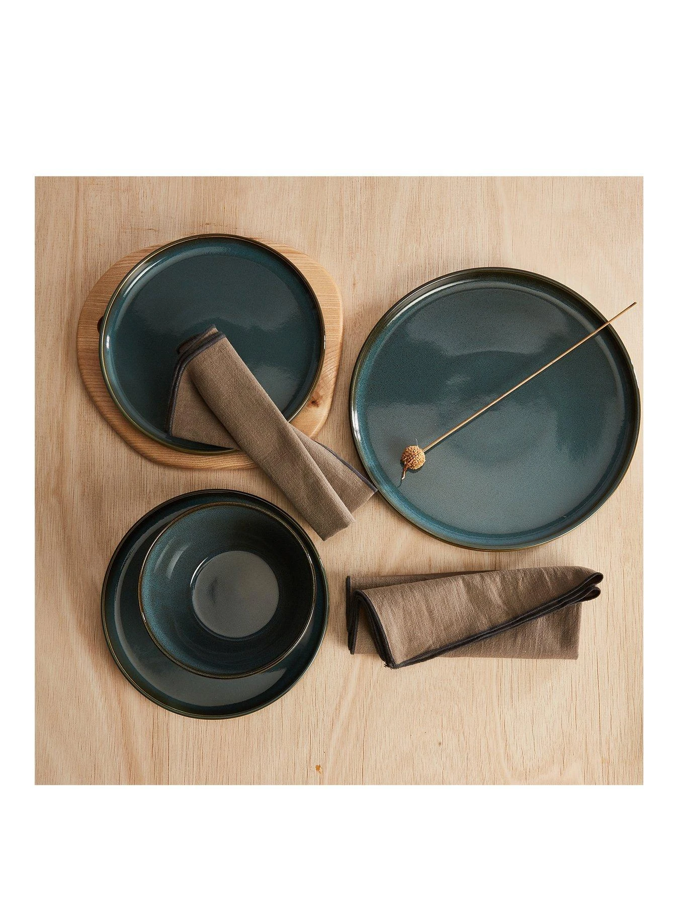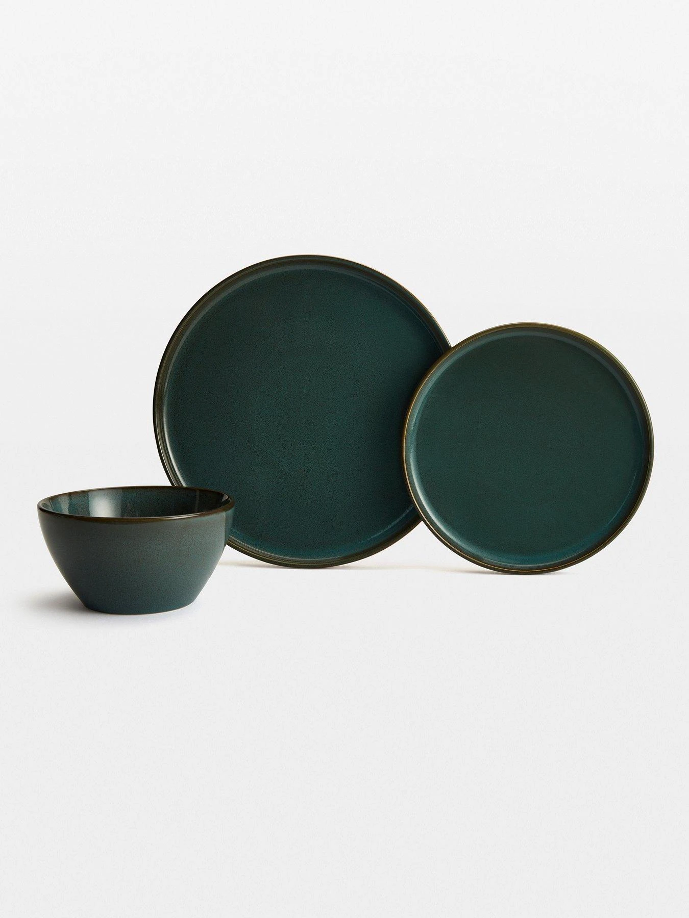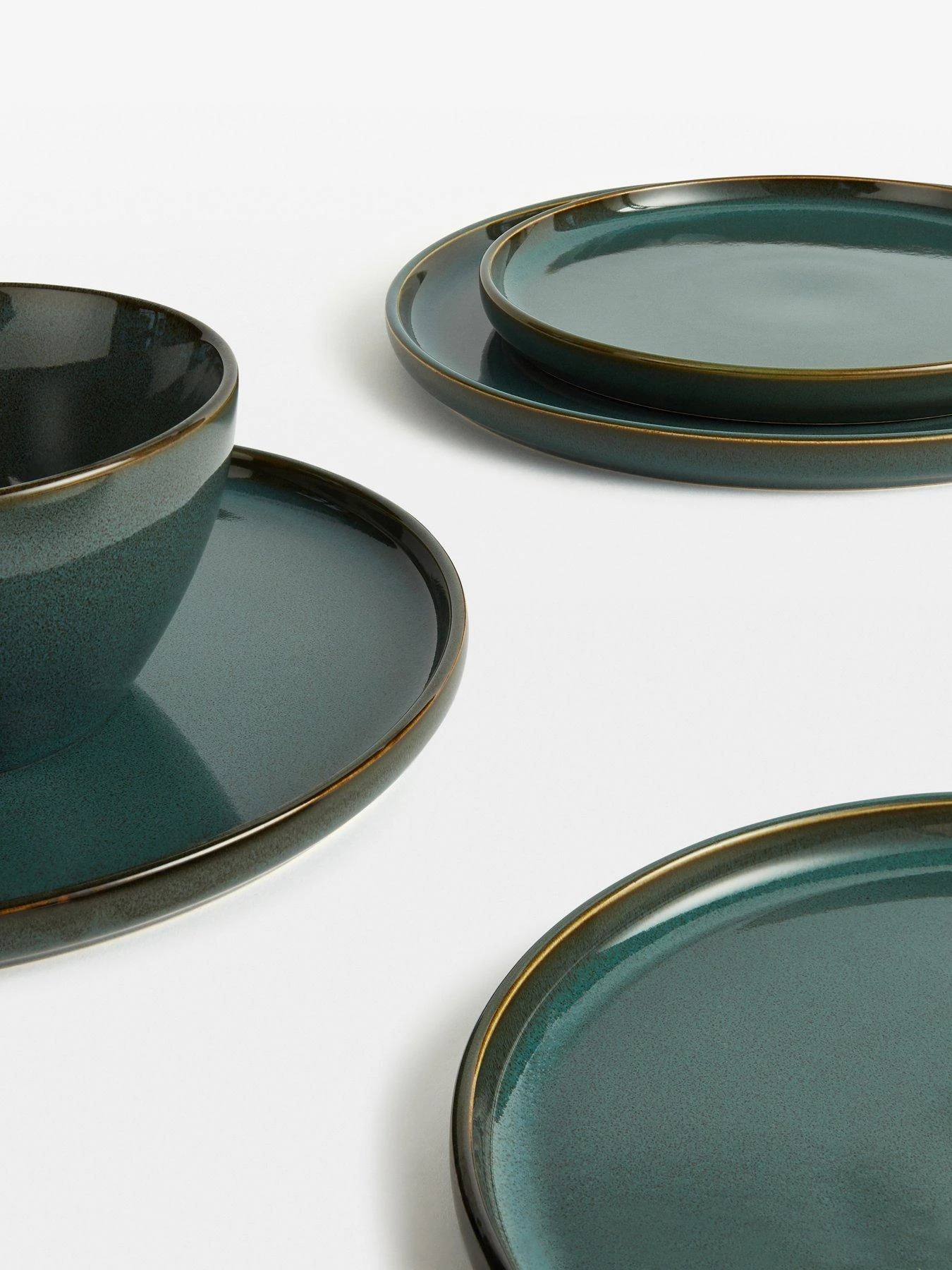 Made from stoneware, the whole set is designed to capture the attention with its gorgeous green speckled colour scheme, which is finished with a light-catching reactive glaze. A unique silhouette featuring low profiles and high sides, provides a subtle sense of depth and texture that’s perfect for special occasions.