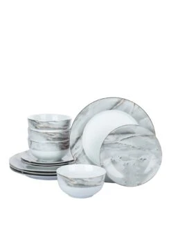 Made from porcelain, each piece features grey marble patterning and is finished with gorgeous metallic golden highlights, as well as a coordinating gold rim. A deep design means the bowls are ideal for soup, cereal and tasty curry or pasta dishes, while the dinner plates are left plain in the centre, so they’ll frame your delicious dishes perfectly.
