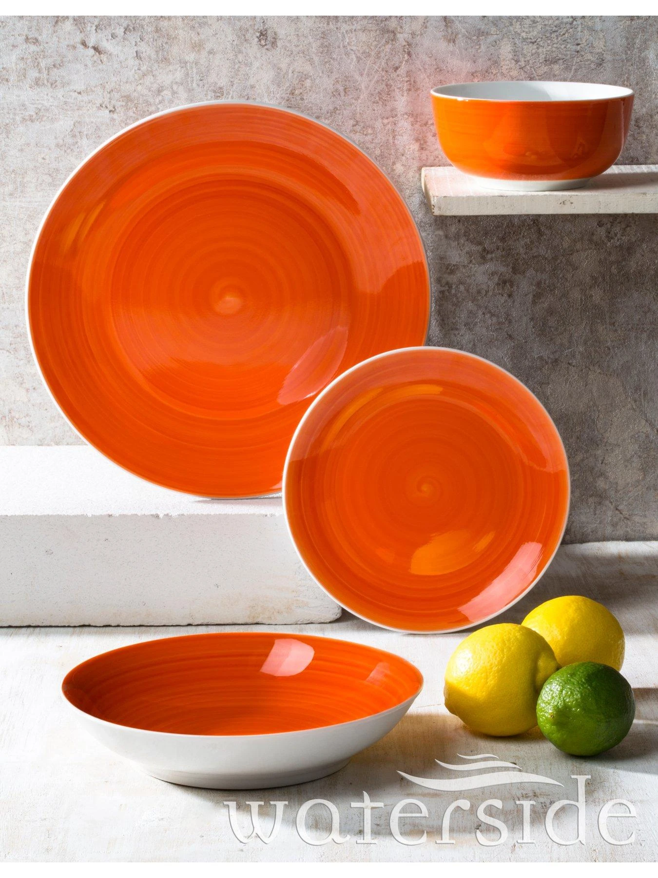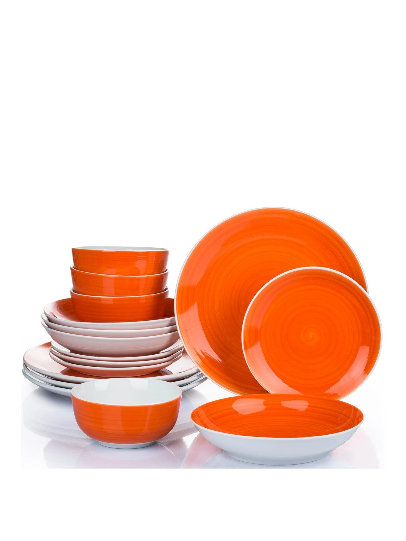 The 16-piece Orange Flame Spin Wash Dinner Service Set by Waterside is a great way to refresh your dining table in an instant.