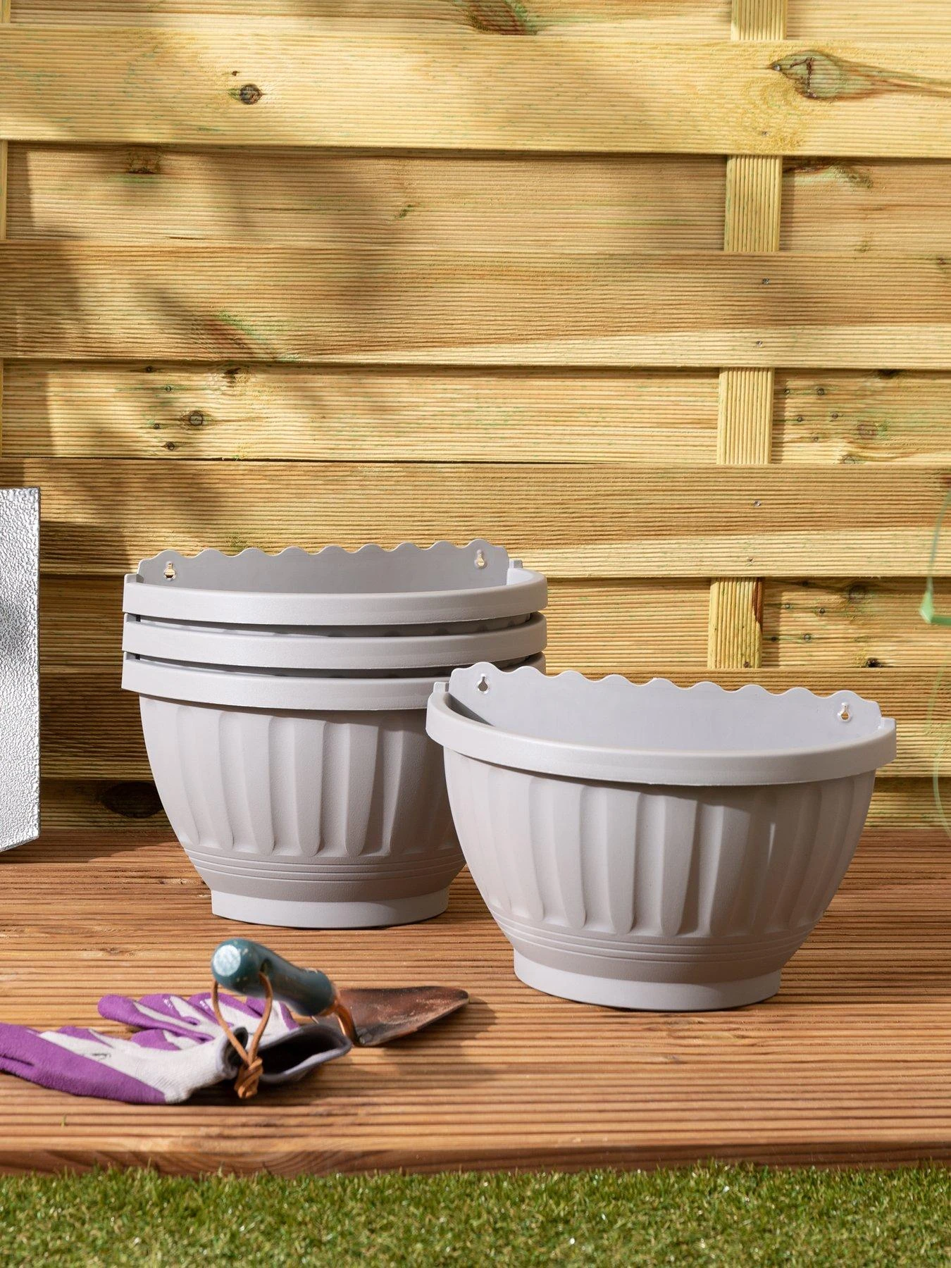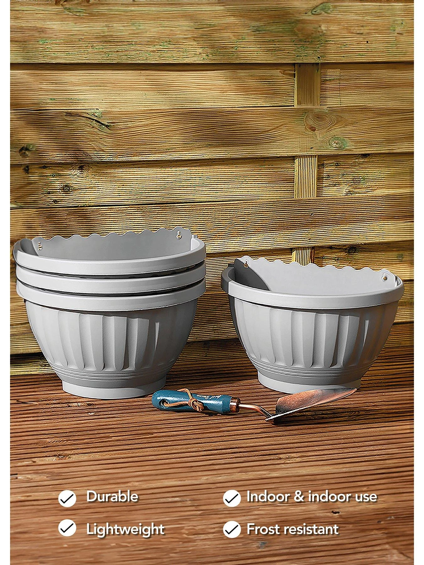 Set of 4 Etruscan 30cm Wall Baskets in Soft Grey. This basket is suitable for outdoor use being weather resistant and lightweight.